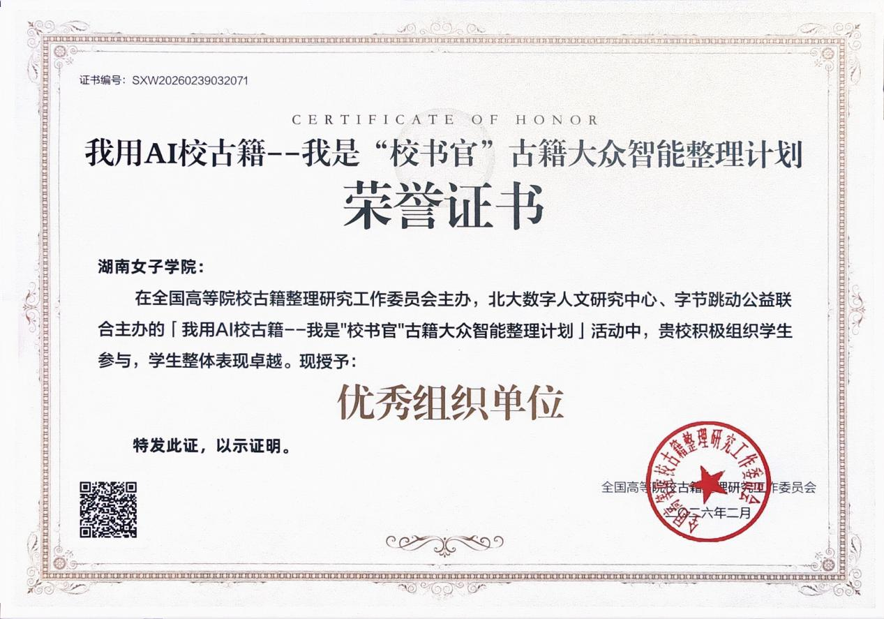 本网讯(388vip太阳集团官网 韩旭)近日,由全国高等院校古籍整理研究工作委员会主办,北大数字人文研究中心、字节跳动公益联合主办的“我用AI校古籍——我是‘校书官’古籍大众智能整理计划”活动圆满结束。388vip太阳集团官网,太阳集团积极组织学生参与此次活动,凭借周密的组织工作和学生们的优秀表现,荣获“优秀组织单位”称号,学院青年教师韩旭荣获“优秀指导教师”荣誉称号。